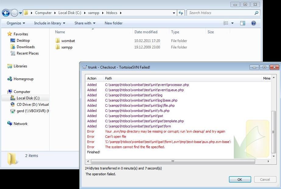 Die Ursache herauszufinden hat eine Weile gedauert, doch nachdem ich die Datei von "aux.php" in "auxiliary.php" umbenannt hatte war das Problem behoben und Wombat ist wieder windowskompatibel - und das sogar mit Windows 2000, XP, Vista und Windows 7. Heute war also mal wieder einer jener Tage an denen ich mir nichts sehnlicher wünsche als eine Windows mit einem ordentlichen Dateisystem.